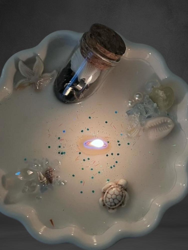 القزازه الموجوده بالشمعه يكون بداخلها الرساله المختاره من قبلك